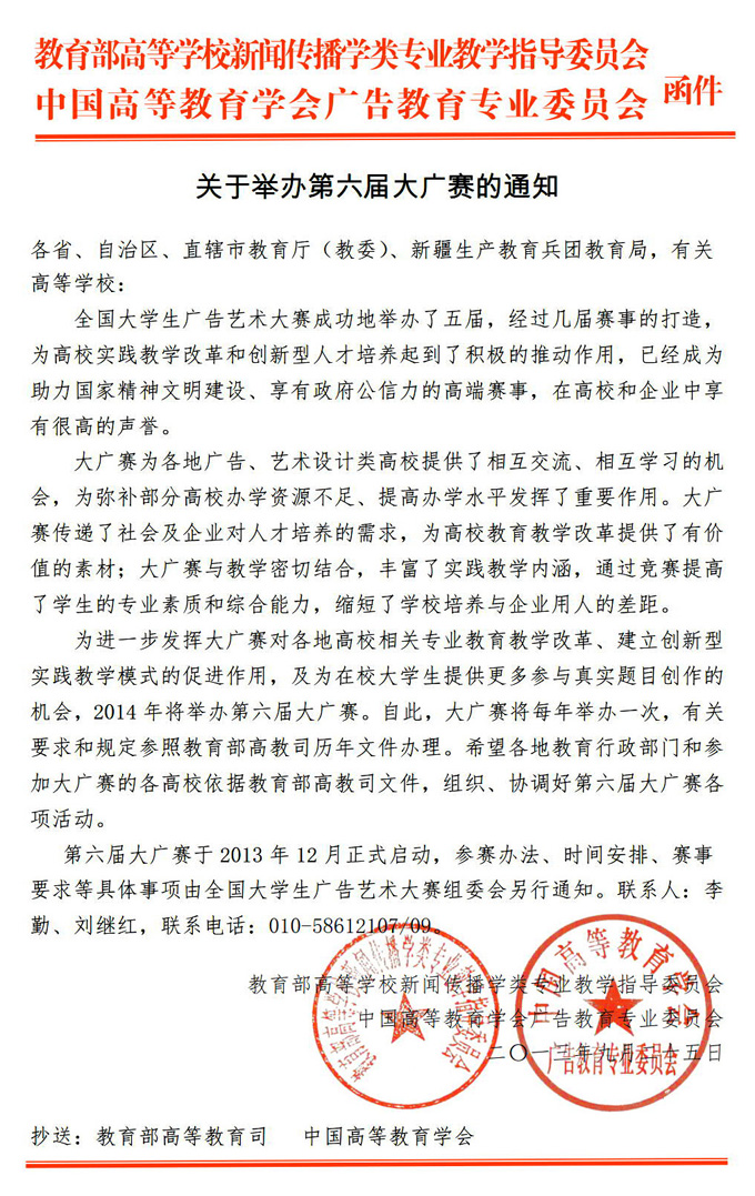 为了提高老员工的创新精神和实践能力,激发老员工的创意灵感,促进大学太阳成城集团tyc234cc古天乐新闻传播、广告、艺术教育的人才培养模式的改革,同时选拔优秀作品参加2014年第六届全国老员工广告艺术大赛,经公司研究决定,将于2014年6月举办2014年太阳成城集团tyc234cc古天乐广告艺术大赛。本次竞赛由教务处主办,太阳成城集团tyc234cc古天乐承办。现将有关事项通知如下: