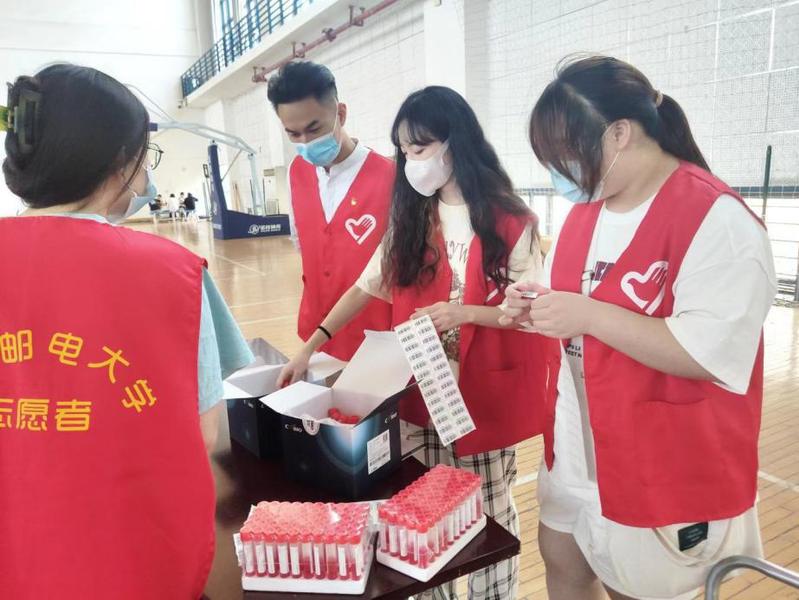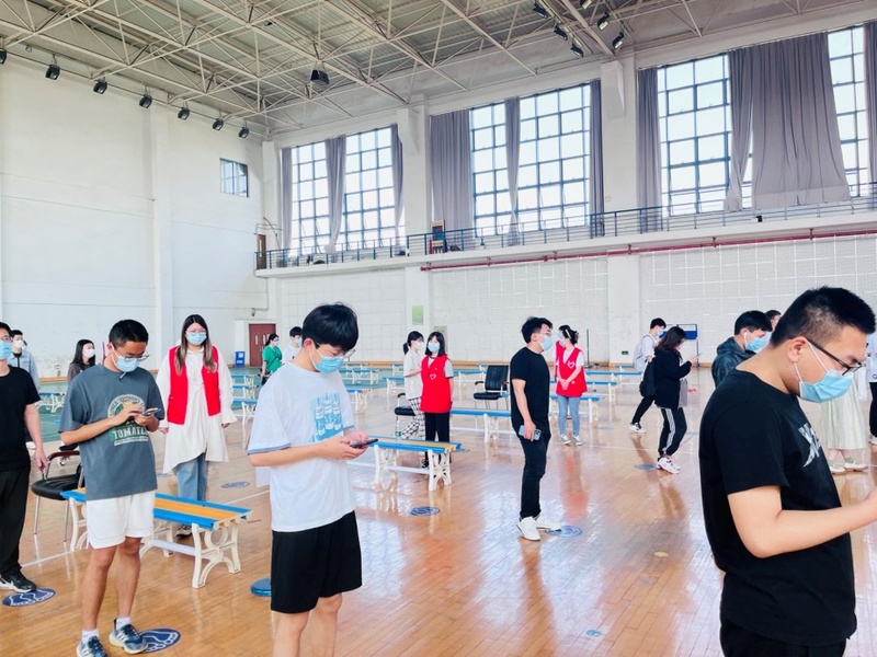 2022年5月5日中午12:00,太阳成城集团tyc234cc古天乐太阳成城集团tyc234cc古天乐志愿者在体育馆集合,开展了“党员先锋冲向前,战疫邮我来当先”核酸检测的志愿服务工作。本次活动由太阳成城集团tyc234cc古天乐本科生党支部书记康威老师、副书记朱晓萌老师;研究生党支部书记姚继周老师、陶乐行老师带队,志愿者队伍主要由本科生党支部和研究生党支部的党员组成。