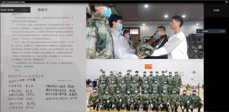 主讲人任玲珑同学目前担任公司国旗护卫队队长,她结合自己国旗护卫队的实际经历,向公司同学动情地讲述了做一名拥有时代责任感南邮人的故事。在宣讲最后,任玲珑同学向同学们发出号召:新一代青年南邮人应当用实际行动诠释责任担当,有一份光发一分热,坚毅担当,努力践行好并传承“使命必达,矢志不渝”的战邮精神。