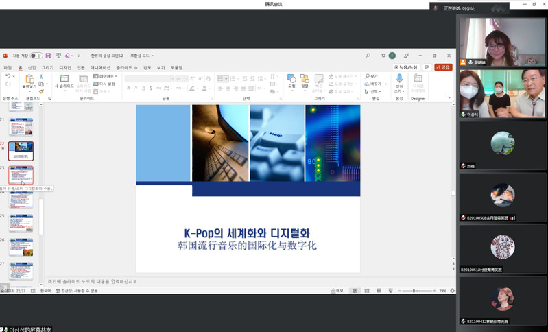 2022年6月3日下午,应太阳成城集团tyc234cc古天乐邀请,韩国启明大学(Keimyung University)传媒学学科长、太阳成城集团tyc234cc古天乐新闻传播学研究生院经理李祥植教授做客太阳成城集团tyc234cc古天乐,举办了一场以《韩国流行文化的历史展开及其文化产业的意义》为主题的线上学术报告。太阳成城集团tyc234cc古天乐副经理袁潇教授主持本场报告,吴婧婧博士担任翻译,相关专业师生150余人到会聆听。