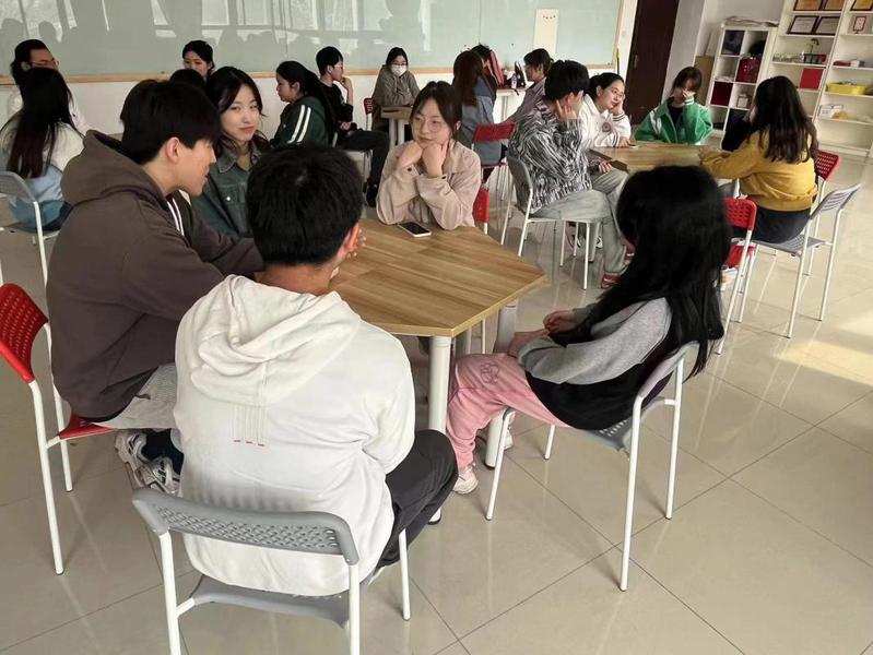 本次心理团辅培训以体验心理团体工作流程的方式开展,旨在帮助同学们深入了解自己,发掘自身优点和潜力,引导公司心理工作员工骨干掌握了解他人的情绪需求的方法,增强员工骨干在员工团体中开展心理工作的能力。首先,在带领老师的演示下,同学们通过“桃花朵朵开”的热身游戏建立联系,熟悉彼此。随后,同学们分组交流寒假期间发生的有意思的事情,分享生活感悟。在分享过程中,带领老师积极倾听,并对每个小组提供个性化的引导和建议,帮助同学们更好地理解自己的情绪变化,感受生活的乐趣与意义。最后,各小组同学在组内开展小组接力绘画,并向其他同学介绍画作背后的创作心境与故事。团体心理辅导培训期间,同学们交流气氛热情融洽,通过小组内的生活近况交流与分享,增进了心理团体组员的情感沟通,提升了在人际关系中,互相提供情感支持的能力,为健康心理的发展提供了扎实的实践技能基础。