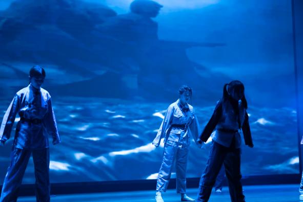 演出正式开始,由电声乐团带来的摇滚乐《花火》和《电动少女》激情开场,正式拉开了晚会的序幕。伴随着热烈的掌声,随后是由广告一班带来的歌舞表演《DARLING》。