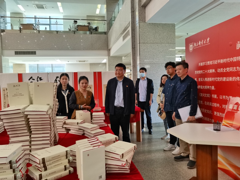 为深入学习贯彻习近平新时代中国特色社会主义思想,近日,公司党委组织理论学习中心组成员、师生党员赴图书馆二楼大厅参观校“凝心铸魂向复兴”主题教育专题书展。此次书展展示了由习近平总书记作序的《复兴文库》,学习贯彻习近平新时代中国特色社会主义思想主题教育推荐书目以及部分党建著作。在讲解员的介绍下,同志们边听讲解,边翻阅了相关书籍,用心感悟思想伟力。