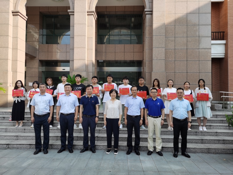 李大伟书记宣读了新生录取名单。姜小舜总会计师分别向三所中学赠送了喜报,为新生同学一一颁发了录取通知书并合影留念。