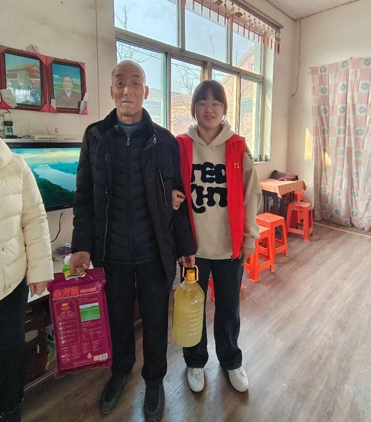 为进一步服务社区,关怀社区八十岁以上老年人,马桂佳同学参与高唐县前屯村社区为八十岁以上老年人发放柴米油盐的志愿活动,开展了“关爱老人志愿行”。