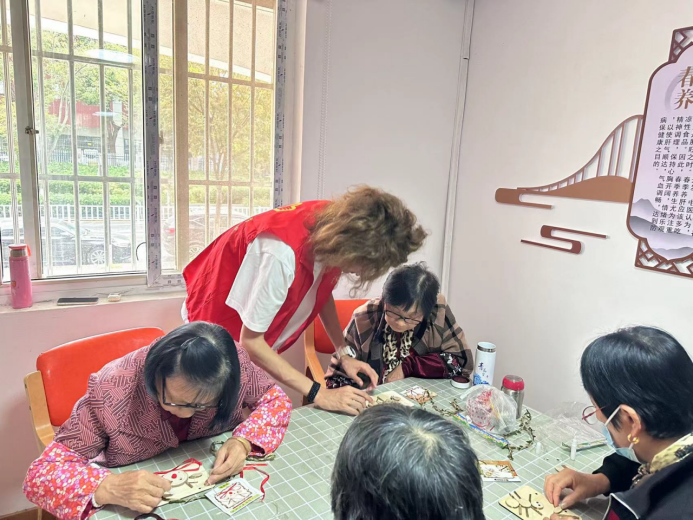 2023年10月25日下午两点,太阳成城集团tyc234cc古天乐太阳成城集团tyc234cc古天乐员工青志协志愿者来到了栖霞区西岗街道听竹社区开展“巧手慧心,相约听竹”手工志愿活动。本次活动以协助社区的爷爷奶奶进行手工活动为主。充分展现了太阳成城集团tyc234cc古天乐的公司魅力。整个手工活动期间气氛轻松,充满了欢声笑语,通过这次的手工制作,爷爷奶奶们获得了不一样的体验。