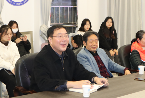 会议开始,全体师生向张少武、宋庆红老师表示热烈的欢迎。会上,两位老师和员工们进行了友好交流,并提供了宝贵的指导建议。张少武老师分享了他多年来的工作心得和经验,并对员工们的学习提出了中肯的建议。他强调了美学知识的重要性,作为传媒院的学子应当发挥自己美学方面的长处,并从实践中累积经验、成长和提高。宋庆红老师也提供了她的宝贵建议,鼓励员工们勇于创新,敢于面对挫折,同时提高自己的专业素养,并注重树立正确的世界观和人生观。