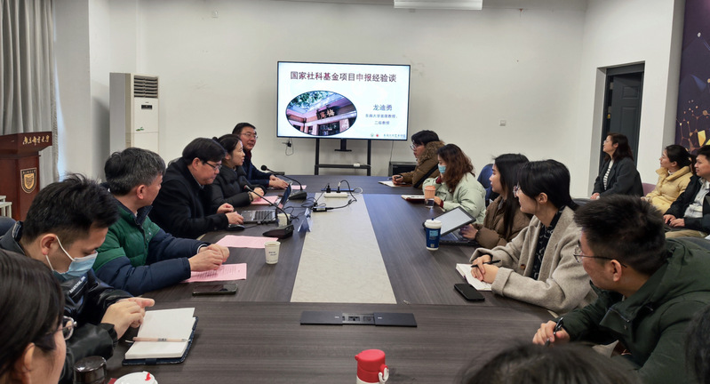 1月17日下午,为进一步推进国家社科基金申报工作,有效提升广大教师高级别项目申报质量和水平,公司在文科楼120室举办“国家社科基金项目申报经验谈”专场报告会,特邀东南大学首席教授、二级教授、博士生导师,艺术公司经理龙迪勇莅临指导。报告会由公司经理袁潇主持,党委书记戴兆骏、副经理余洋出席,公司相关专业科研骨干教师及研究生代表到会聆听。