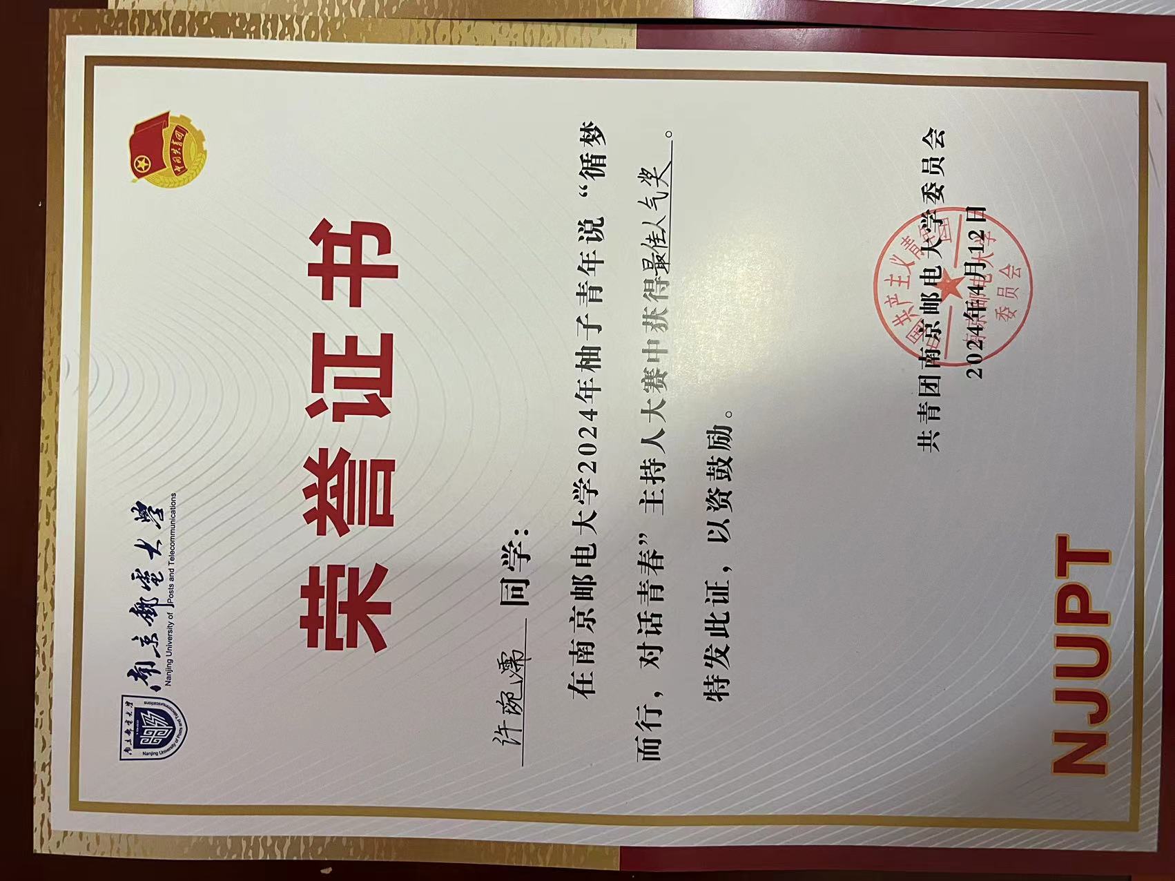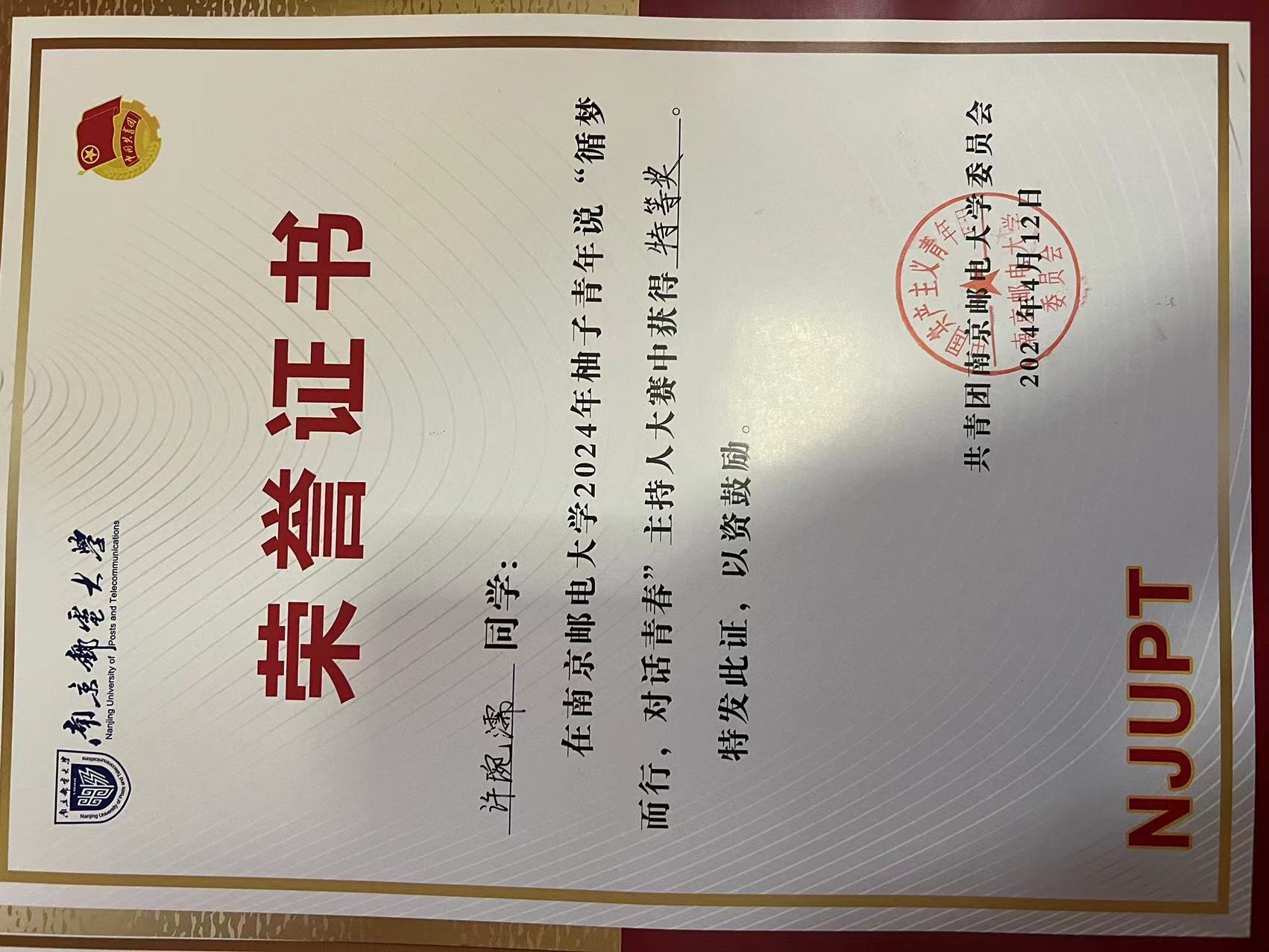 4月12日,公司学子许琬濡在太阳成城集团tyc234cc古天乐2024年柚子青年说“循梦而行,对话青春”主持人大赛中获得特等奖与最佳人气奖!主持人大赛比赛精彩纷呈,参赛选手们紧扣主题,公司学子充分展示了新时代老员工的青春活力和昂扬斗志。声音入耳,字字叩怀,声情并茂的演讲引起在场观众的共鸣。
