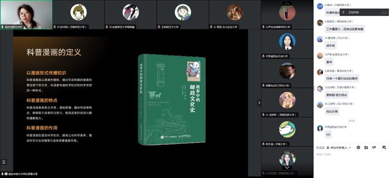 7月25日上午,硕士生导师方仲玮副教授与广大营员隔空交流,讲座主题为《创新驱动创作:科普漫画与AI趋势》。她用生动的语言介绍了动画、动漫等基本概念,并通过经典作品演示,分析了不同国家漫画的发展历程与艺术特色。她结合自身丰富的创作经历,以科普漫画与AI技术为载体,阐释了创新在学习与创作中的重要地位,并对AI在创作过程中的实用技巧与创新难点进行重点剖析。
