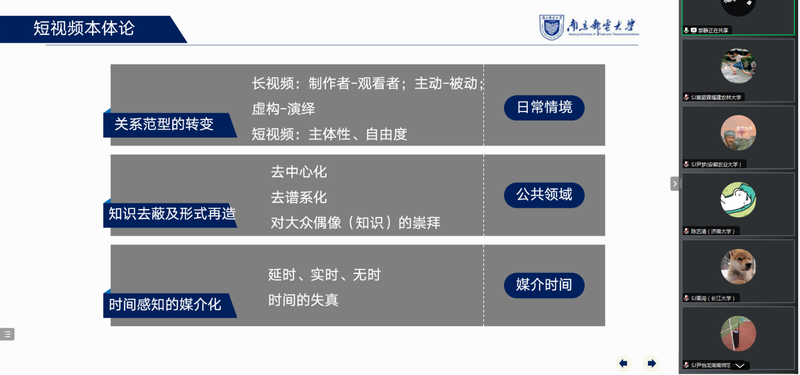 7月24日下午,硕士生导师郭静副教授为营员带来了一场题为《人工智能时代短视频研究的学术路径与未来展望》的学术讲座。她以数据为引展示了短视频的流行趋势,结合个人工作经历分析解读了短视频的本体论,批判性探讨了短视频如何促逼罢置人的主体身体意识,加速时间感知的消解以及模糊真实与虚拟的界限。最后,讲座引入当下人工智能时代的关注热点——Sora,并由此提出了对人机关系、人的自主性以及人与人、人与社会等前沿话题的思考。