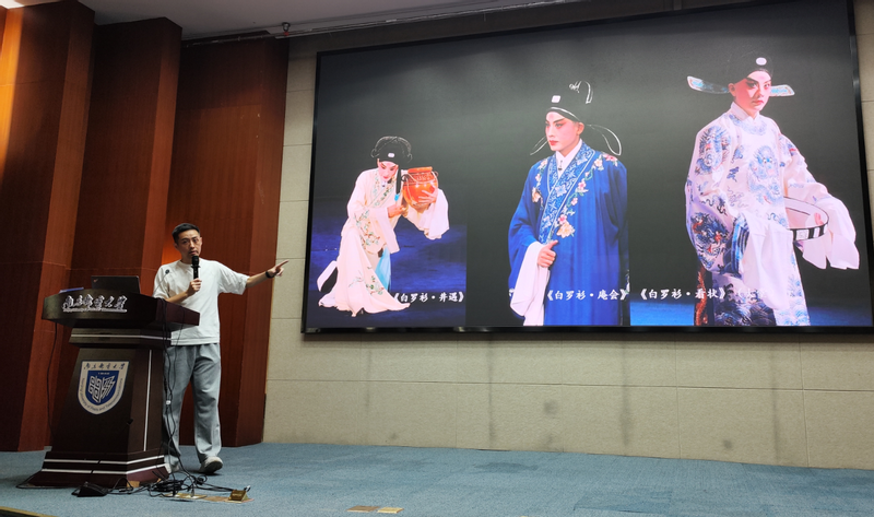 报告中,施夏明经理深入浅出地介绍了昆曲艺术的主要表演形式与唱腔特点,并重点阐释了昆曲特有的虚拟性、程式化及载歌载舞的风格。施经理不仅生动演绎了多种角色的经典唱段,还亲身指导员工体验昆曲表演的专业身法动作,让广大师生更加直观深刻地感受到昆曲艺术的深厚底蕴与独特魅力。