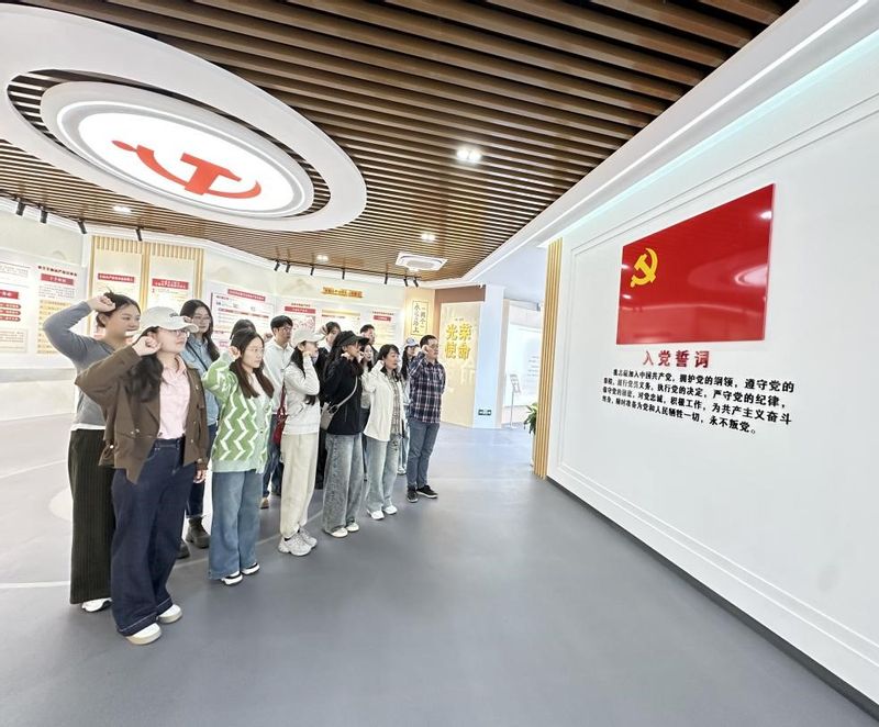 活动中,党员们首先来到高淳“乡村振兴勤廉教育馆”,全体党员面对党旗,庄严宣誓,重温入党誓词,回顾初心使命,坚定理想信念,矢志不渝履行党的重托。随后,党员们参观了四个展厅:光荣使命、激浊扬清、成果展示及特色展厅。展馆通过图文展陈、影像资料等多种形式,展现了近年来乡村振兴战略的重大成果。通过参观,同学们深刻感悟到乡村振兴离不开党风廉政建设强有力的支撑,只有时刻保持廉洁自律,严守拒腐防变思想防线,才能使美丽乡村快速发展、振兴。