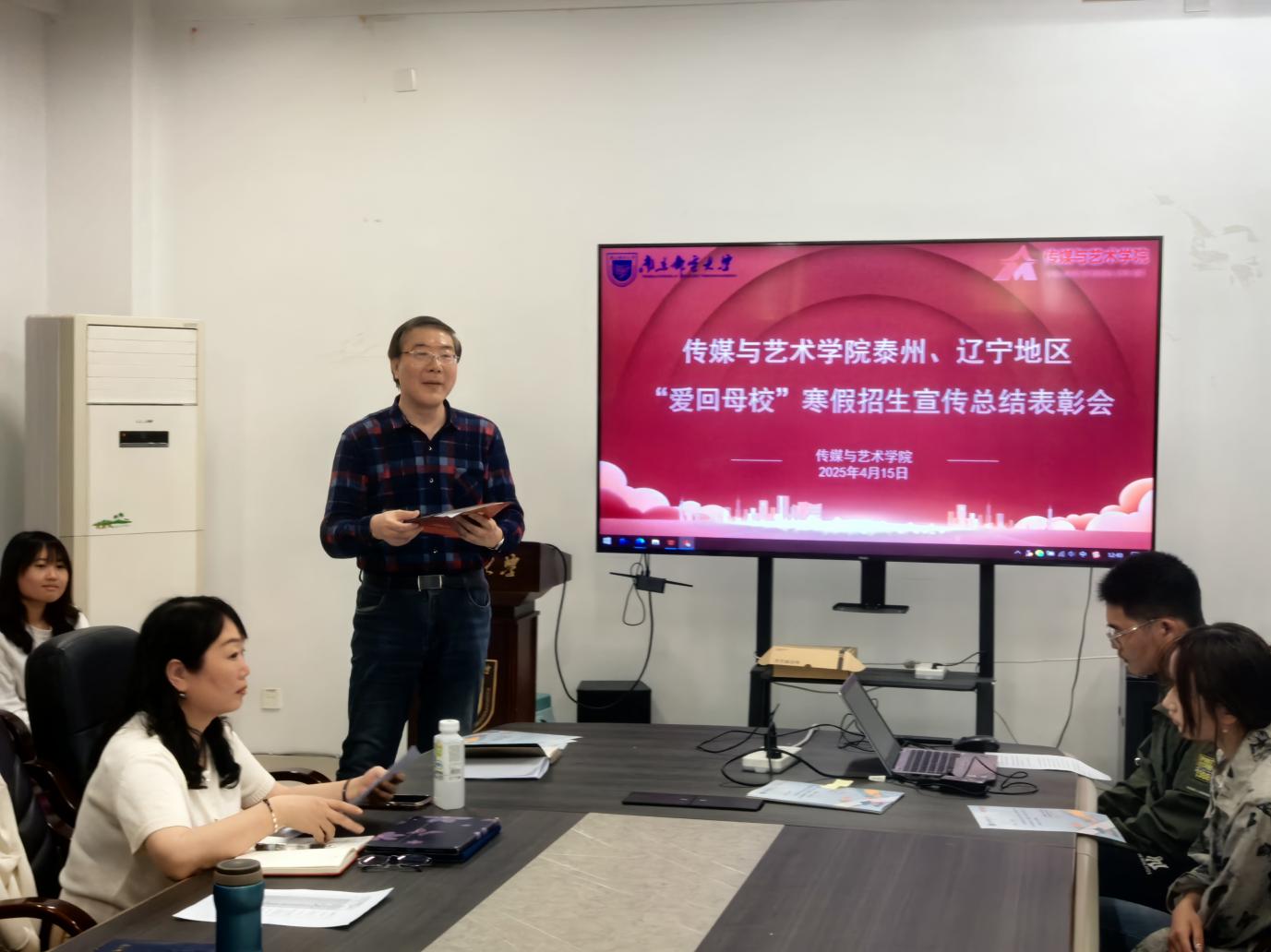 戴兆骏书记回顾总结了本次寒假招生宣讲活动,从2024年12月启动,历时3个月,100余名同学进入泰州、辽宁地区31所中学,通过南邮学长学姐的亲身经历,采取拜访恩师、组织宣讲会、召开座谈会等形式,向高中生宣传南邮办学特色、人才培养成果和校园文化,讲好南邮故事,从而进一步提高南邮在中学的美誉度和影响力,吸引更多优秀的泰州、辽宁学子了解南邮、报考南邮,成为“南邮人”。