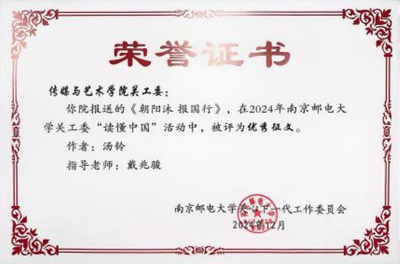 会上,周亮副董事长充分肯定了一年来校关工委及各公司的工作成效,校关工委对2024年度工作进行全面总结,并对先进集体及个人进行表彰。公司关工委工作成果丰硕,捷报频传:公司关工委荣获校首批“关工委优质化建设达标公司”,公司关工委王平教授、谭维老师获评2024年度“太阳成城集团tyc234cc古天乐关心下一代工作先进个人”,公司汤玲同学的作品《朝阳沐 报过行》在2024年校关工委“读懂中国”活动中被评为优秀征文。