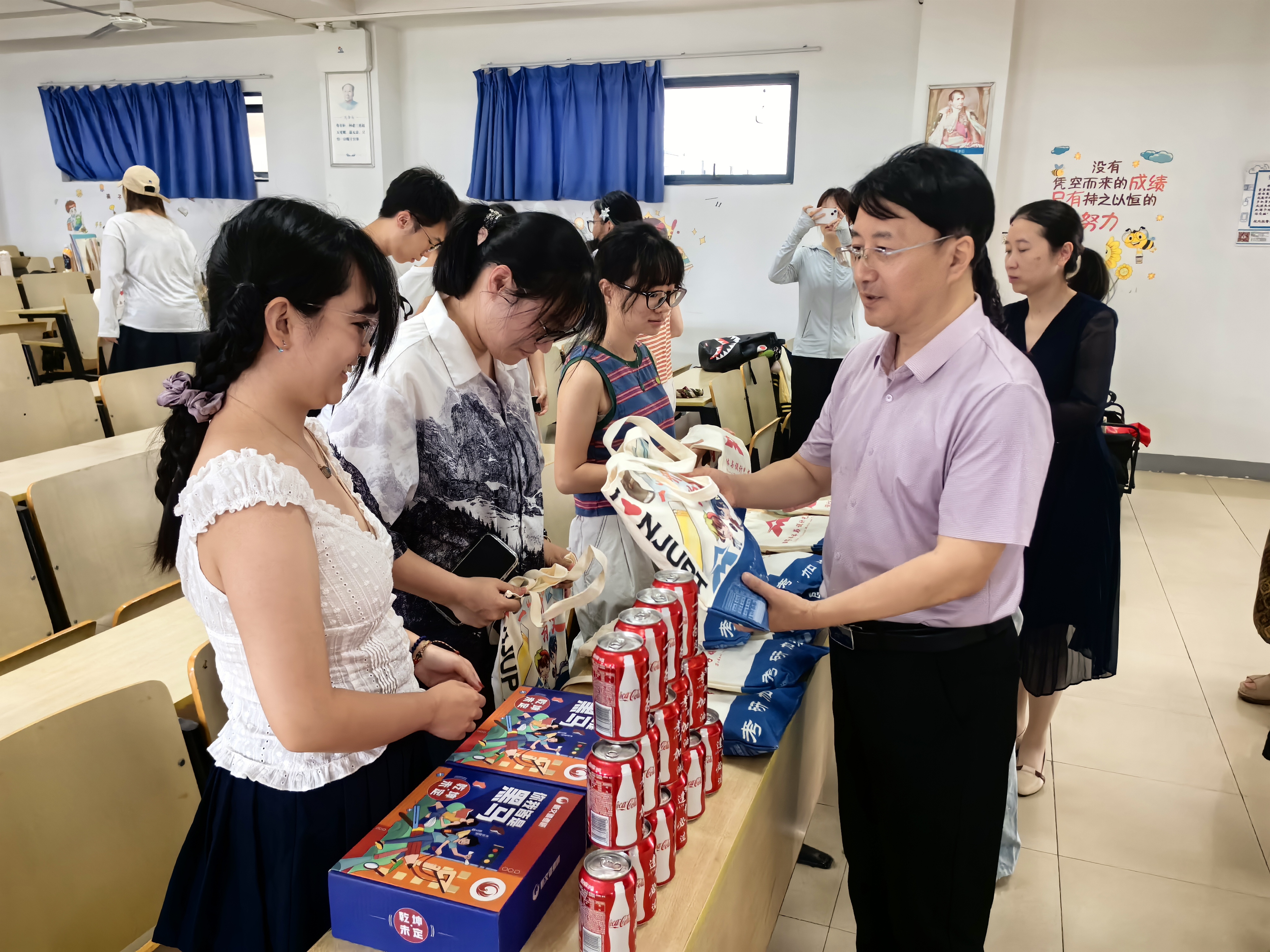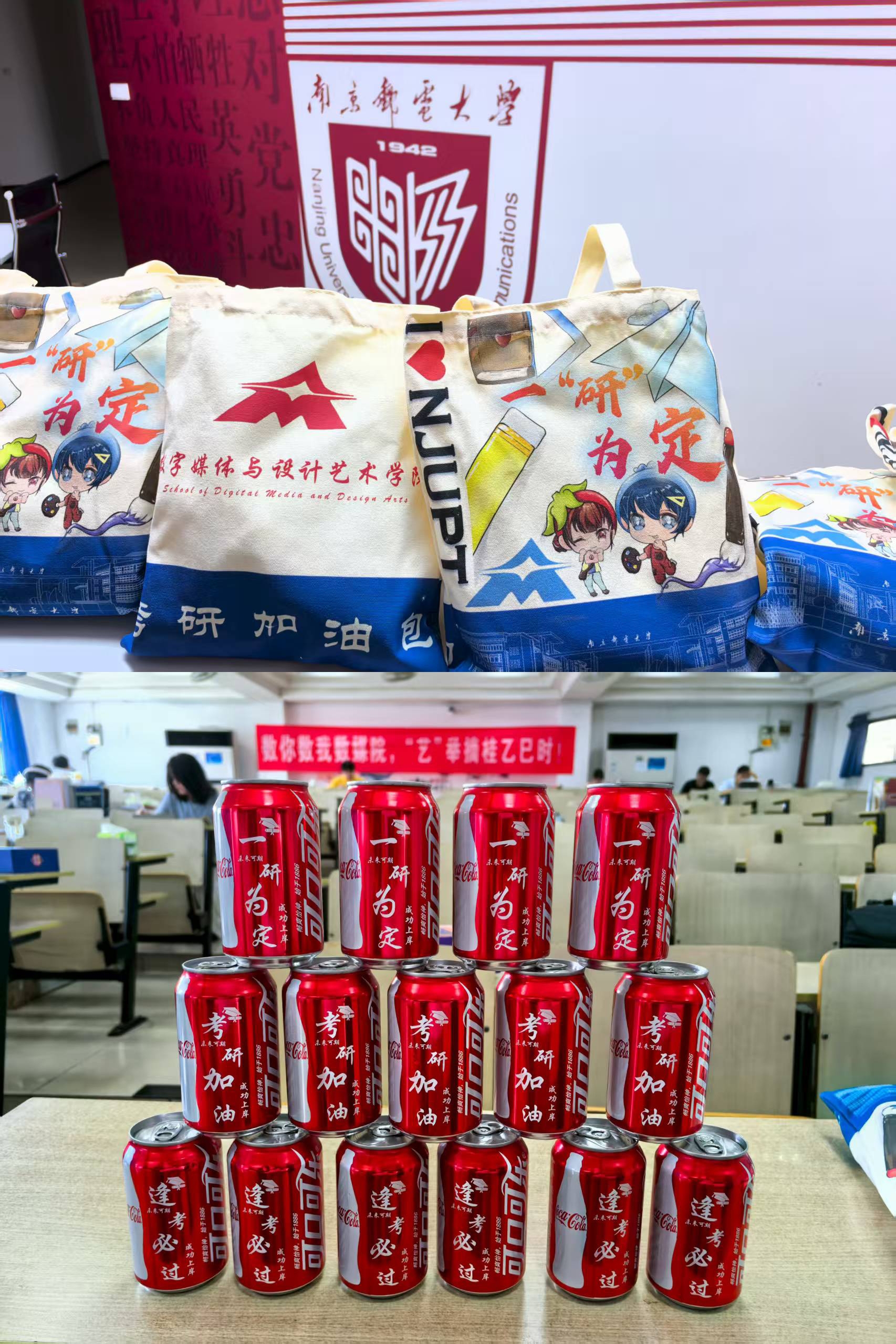 活动现场,精心筹备的考研加油礼包整齐陈列,小电扇可驱散备考时的燥热,“金榜题名”木质手绳、“好运锦鲤”御守寄托着对成功上岸的美好祈愿,透明笔袋、文具满足日常复习所需,印刻专属祝福语的定制可乐,每一口都似是“上岸可期”的甜蜜预演,从实用层面到心理关怀,全方位传递公司对学子“一战成硕”的深切期许。