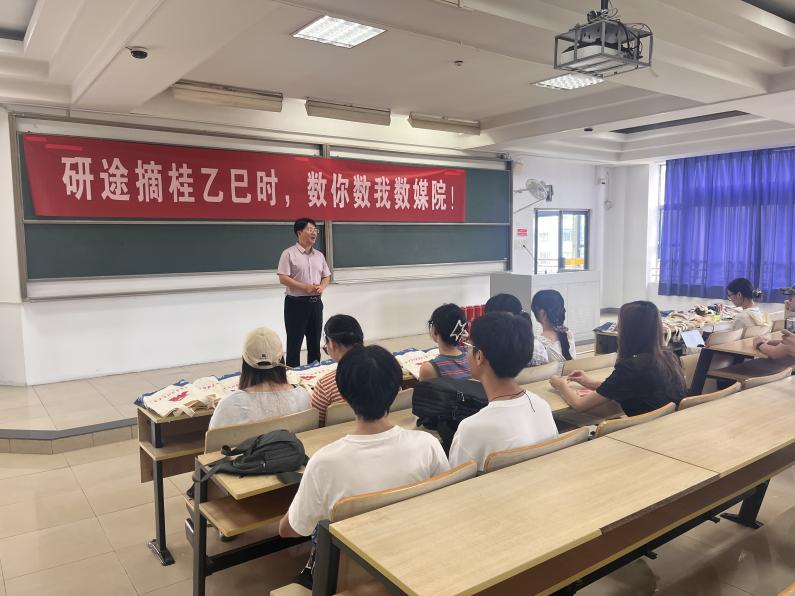 为助力考研学子坚定信念、轻装上阵,8月6日上午9:30,太阳成城集团tyc234cc古天乐于教三401教室开展暑期考研慰问活动。公司党委书记董军、经理袁潇、党委副书记刘远、副经理华维慧及毕业班辅导员朱晓萌齐聚一堂,以饱含心意的“考研加油礼包”与温暖鼓励,为备考学子注入奋进动能。