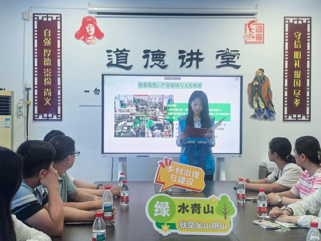 整场宣讲充满真挚情感与青春活力。许镕羽表示,只有带着对家乡的深厚热爱,讲实在话、谋实在事,才能真正打动乡亲邻里。她的分享成功地将“乡村振兴”从一个概念,转化为大家愿意携手参与、共同奋斗的生动实践,为杭集镇的振兴发展注入了新的青春视角与思想动力。