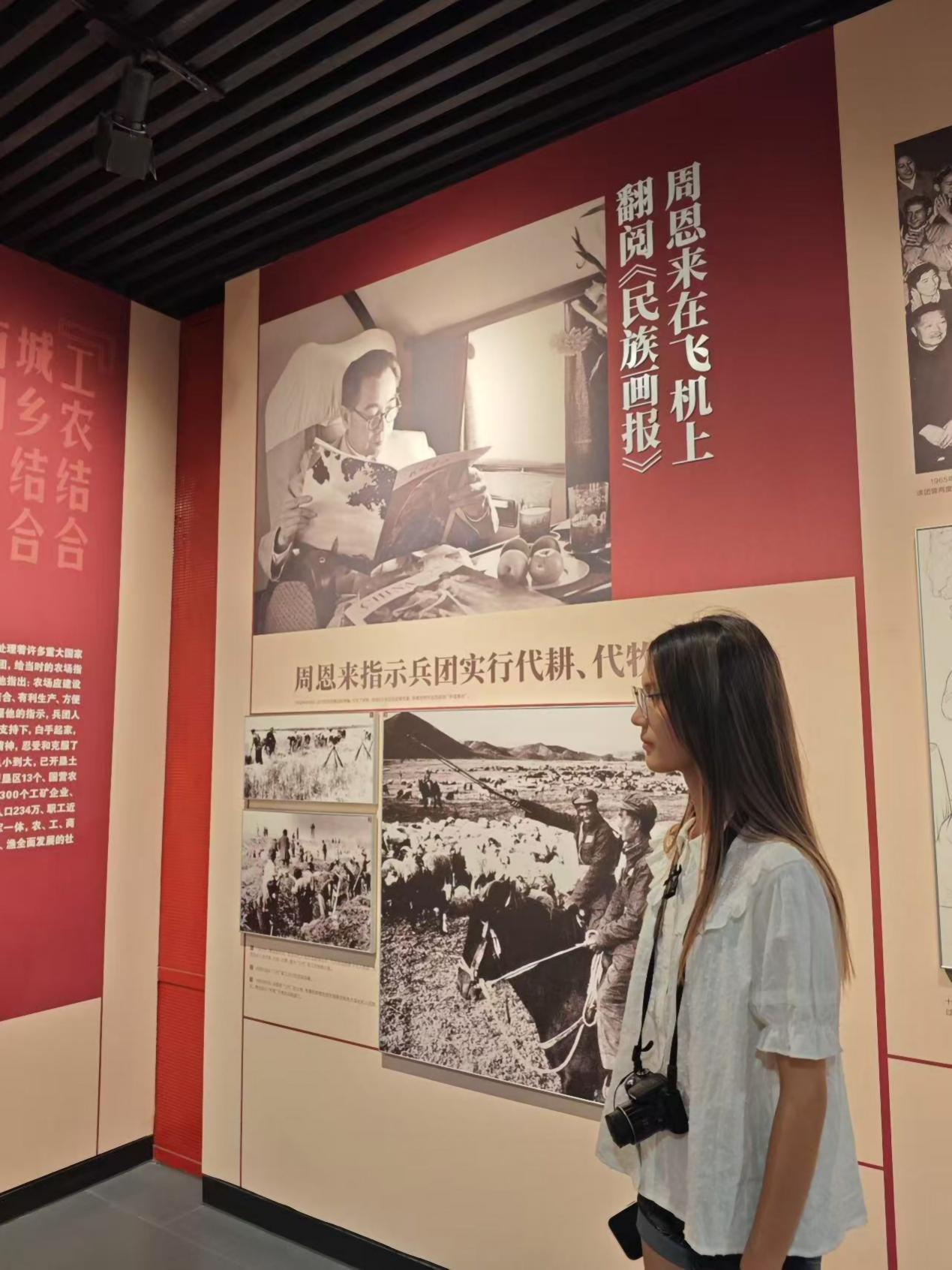 红色展览环节,讲解员带领大家参观革命先辈事迹展板,解读“代耕代牧”等历史背景和珍贵实物。参观者在展板前驻足良久,透过老照片和实物感受历史厚重,纷纷用相机记录下触动心灵的瞬间。