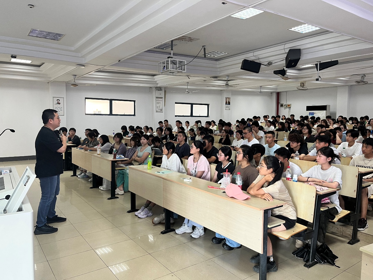 讲座伊始,姚老师以新生常见的“认床失眠”现象为切入点,向同学们解释了这种情况的心理原因,并深入探讨了情绪的来源、新环境中应对压力的策略,以及如何有效调节情绪等重要内容。通过生动的讲解,姚老师帮助同学们理解在面对压力时如何保持心理平衡,学会自我关怀与情绪管理。