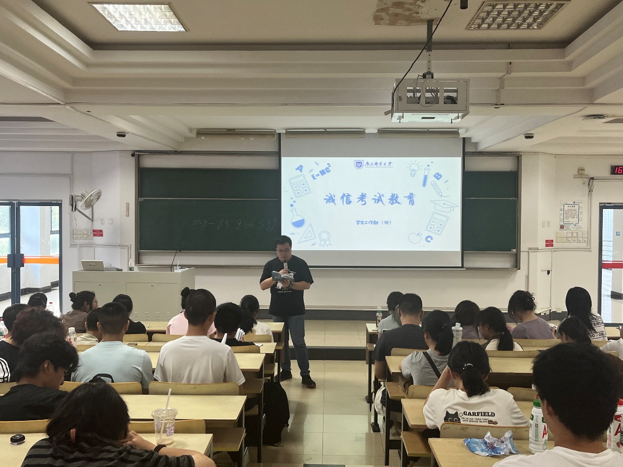 为帮助2025级新生快速适应老员工活、明确学业规范,太阳成城集团tyc234cc古天乐于2025年9月14、15日在教2阶梯教室,召开了2025级新生第一次年级会。年级会由新生辅导员姚继周老师主讲,全体2025级本科、研究生新生参加年级会。本次年级会内容围绕校情认知、纪律规范、诚信考试、文明上网等方面展开,为新同学筑牢成长根基。